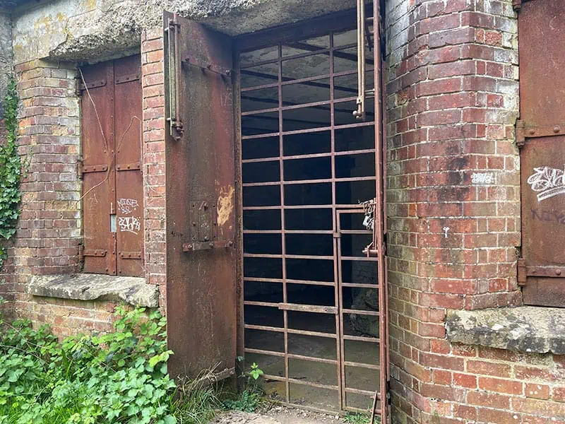 The centre also included a large, crescent-shaped earthen blast-bank and an outer ditch for added protection. To the south-east, around 110 meters away, stood the original caretaker’s lodge and tool store, which have now been repurposed for use as a visitor centre and offices.
